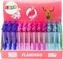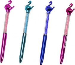 Balpen met flamingo en glinsterende steentjes, blauwe vulling 0,7 mm (mix kleuren)