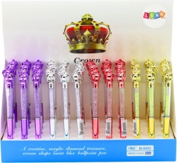 Elegante balpen met een decoratieve kroon en een transparante behuizing vol glinsterende steentjes. Biedt blauwe inkt, een 0,7 mm punt voor soepel schrijven en een luxueuze uitstraling voor dagelijks gebruik én cadeaumomenten. Beschikbaar in een kleurenmix.