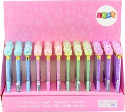 Een unieke pen die elegantie en modern design combineert. De transparante body met kleine steentjes zorgt voor schitterende reflecties en de afwerking in de vorm van een “diamant” geeft extra flair aan het schrijven. Dankzij de blauwe vulling en een puntbreedte van 0,7 mm biedt de pen een vloeiende en goed leesbare lijn, geschikt voor school, kantoor en persoonlijke notities.