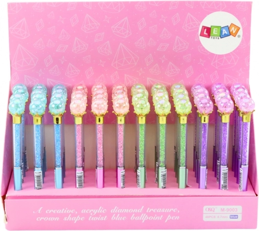 Balpen met diamanten bol, blauwe vulling 0,7 mm, mix van kleuren