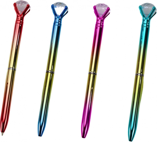 Elegante balpen met fonkelende diamant, gouden behuizing, blauwe vulling 0,7 mm. Keuze uit kleuraccenten, soepel schrijven. CE, EN71, geschikt vanaf 3 jaar.