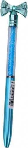 Balpen met strikje en kristallen, blauwe vulling 0,7 mm