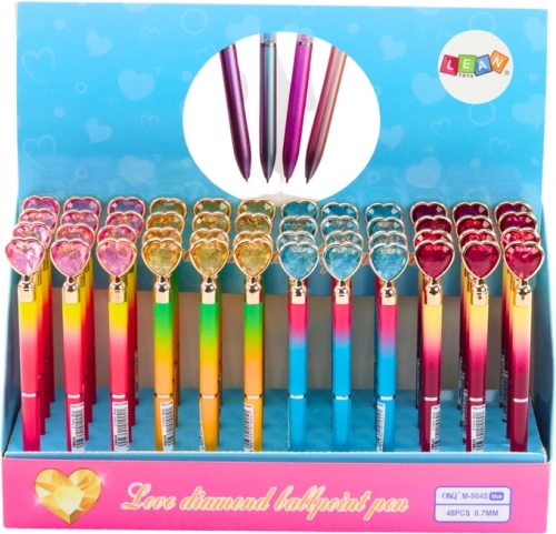 Balpen met diamanten hart, blauwe inkt 0,7 mm – mix kleuren