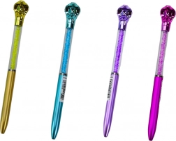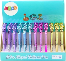 Elegante balpen met een decoratieve cobra en een transparante behuizing gevuld met glinsterende steentjes. Biedt vloeiend schrijven dankzij de blauwe vulling van 0,7 mm en is perfect voor dagelijks gebruik en als cadeau. Verkrijgbaar in meerdere behuizingskleuren.