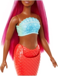 Deze kleurrijke Barbie zeemeermin pop inspireert kinderen tot het creëren van magische onderwateravonturen. Ze heeft een subtiel gevormde, geschubde staart met opvallende vinnen, een schelpen-top en lang roze haar versierd met oceaanachtige accenten. Dankzij de beweegbare delen poseert ze gemakkelijk en kan ze “zwemmen” in fantasiespel.