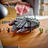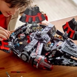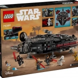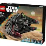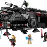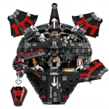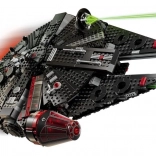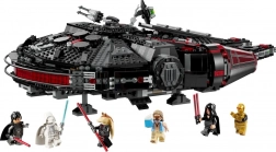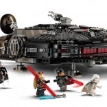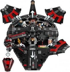 Betreed een alternatief STAR WARS-universum met de donker getinte Duistere Millennium Valk. Het model combineert iconische vormen met een nieuw zwart-rood uiterlijk, een rijk interieur en speelfuncties. De openende bovenpanelen onthullen de troon van Darth Jar Jar, het commandocentrum, de hyperdrive, de funzone en een gevangeniscel.