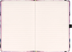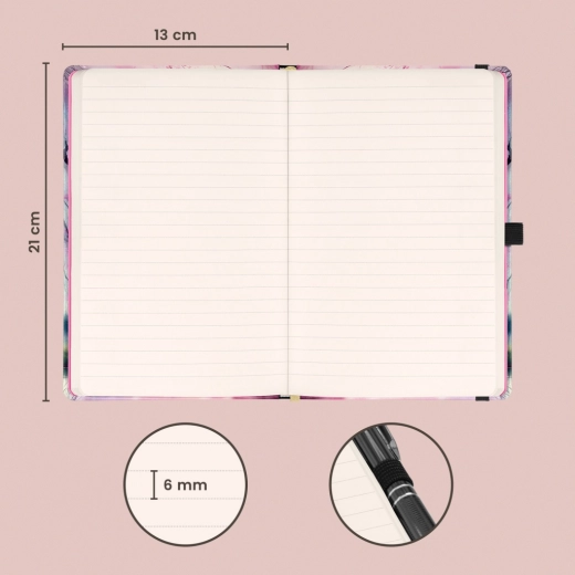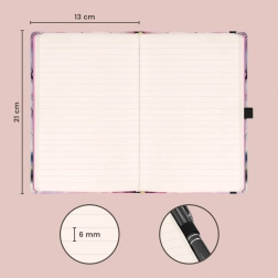Elegant gelijnd notitieboek NOTIQUE Sakura in het praktische formaat 13 × 21 cm met harde kaft, elastische sluiting, pennenlus en binnenvak. Biedt 172 pagina’s op aangenaam geel papier voor dagboek en werknotities.
