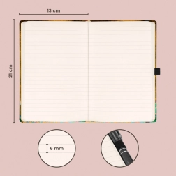 De harde kaft beschermt de inhoud in je tas en onderweg, het elastiek houdt het notitieboek veilig gesloten, de geïntegreerde lus zorgt ervoor dat je je pen altijd bij de hand hebt en het binnenvak biedt ruimte aan visitekaartjes of kleinigheden. 172 pagina's van geel papier bieden voldoende plaats voor al je ideeën.