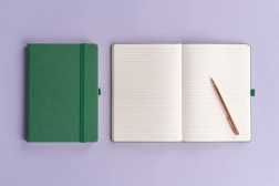 Het stijlvolle Aprint-notitieboek in groene kleur is een uitstekende keuze voor op kantoor, op school en onderweg. Het gelijnde binnenwerk maakt overzichtelijke notities eenvoudig, en dankzij het aangename oppervlak met fijne structuur oogt het notitieboek professioneel en elegant.