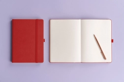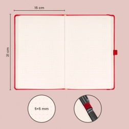 De pagina’s met puntjes bieden flexibiliteit voor schrijven, tekenen en bullet journaling. De cover behoort tot de populairste afwerkingen – hij is duurzaam en maakt eenvoudig foliedrukken van bedrijfslogo’s mogelijk, waardoor het ook geschikt is als zakelijk relatiegeschenk.