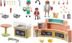 - Figuren en accessoires: De set komt met drie PLAYMOBIL-figuren, een toonbank, een grill met frituur, een wastafel, een bistrotafel en een reeks andere accessoires voor creatief rollenspel.