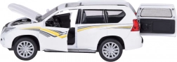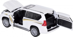 Dit realistische model TOYOTA LAND CRUISER PRADO blinkt uit door de nauwkeurige afwerking van exterieur en interieur en een duurzame metalen constructie. Dankzij de schaal 1:26–1:36 oogt het zeer natuurgetrouw en is het zowel ideaal om mee te rijden als om uit te stallen in een collectie. De witte carrosserie met sportieve details benadrukt het robuuste karakter van de SUV.
