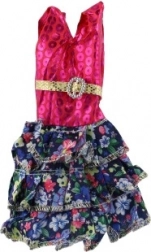 Deze roze jurken met een decoratieve gouden band en patroon details maken elke pop perfect af.
