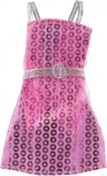 Roze jurken met een glinsterende zilveren riem en bandjes geven een luxe en stijlvolle uitstraling aan de pop.
