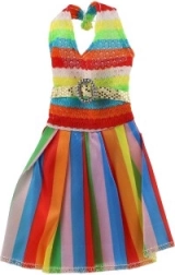 Kleurrijke jurken met regenboogstrepen bieden een unieke combinatie van elegantie en speelsheid, ideaal voor alledaagse of feestelijke momenten.