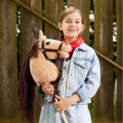 Hobby Horse heeft een realistisch ontwerp met een zachte pluche kop en een houten stok, waarmee kinderen kunnen paardrijden simuleren.