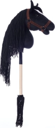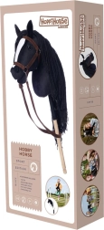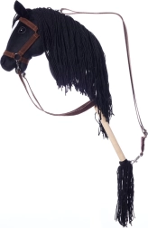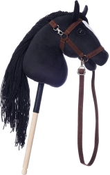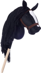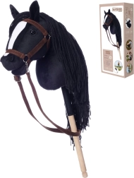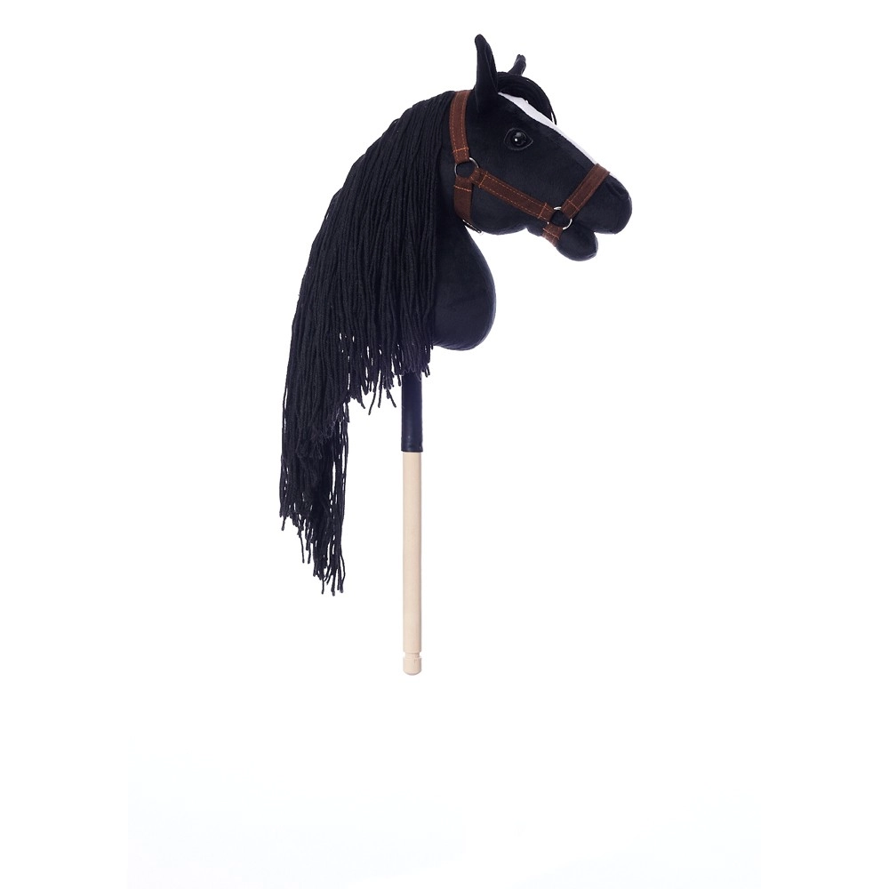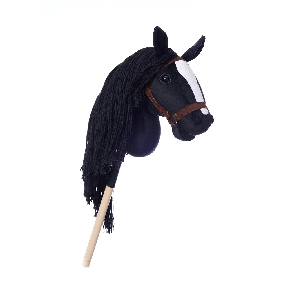 Dit stokpaard heeft een opvallende zwarte manen en een witte bles, wat zorgt voor een realistische uitstraling. Ideaal voor fantasieritten en trainingen.