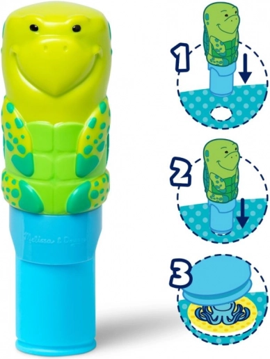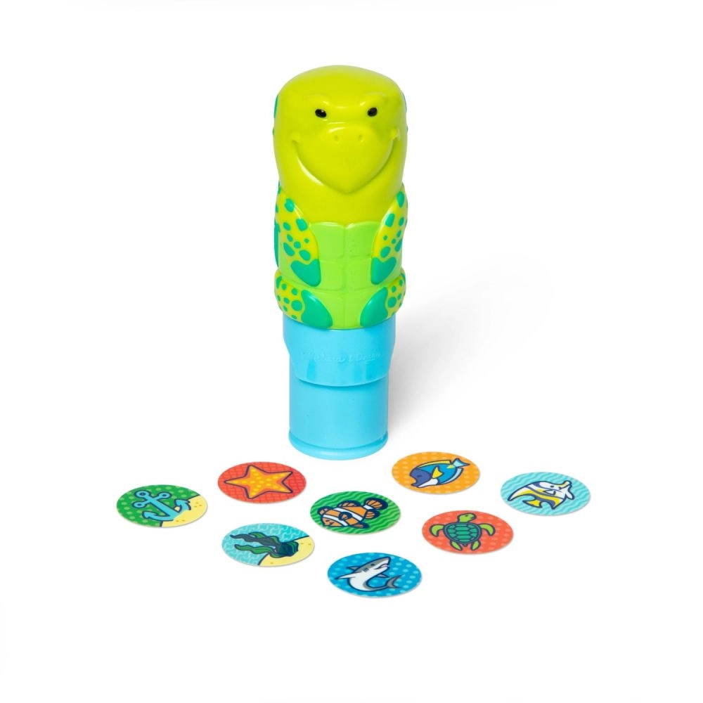 Sticker Wow van Melissa & Doug brengt een onderwater-avonturenset voor je kind! De kleurrijke stempel in de vorm van een lachende zeeschildpad is een revolutie in de wereld van kinderstickers. Eén druk creëert een prachtige sticker met zeethema’s. Bij elk gebruik ontdekt je kind een nieuwe, fascinerende sticker!