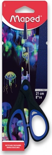 Stijlvolle schoolscharen MAPED Deepsea Paradise met een lengte van 21 cm en een onderwatermotief, bieden zachte symmetrische handgrepen, gedecoreerde bladen van geslepen roestvrij staal en uitstekende knipkwaliteit met scherpe punten die niet snel bot worden.