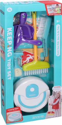 Robotstofzuiger, bezem, stoffer en blik, trekker, sprayfles, bord, stickers<29222922dd>
