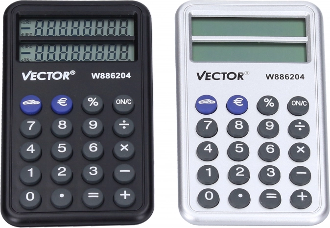 Handige calculator in een elegante zwarte en zilveren variant, ideaal voor degenen die snel valuta moeten omrekenen. Het bevat een gebruiksaanwijzing, waardoor het makkelijk is om direct te beginnen met gebruiken. Dit model: