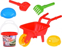 Deze kinder-set biedt alles wat kleine tuiniers nodig hebben: een stevige kunststof kruiwagen, een praktische schep, een lichte hark en een emmer met vrolijk motief. Dankzij het lage gewicht en de ergonomische vormen is hij gemakkelijk te hanteren, of ze nu zand en bladeren vervoeren of kastelen bouwen.