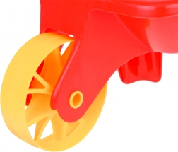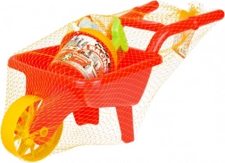 Kunststof kruiwagen met één brede band en comfortabele handgrepen maakt het vervoeren van zand, aarde of speelgoed eenvoudig. Kinderen oefenen hun evenwicht en bewegingscoördinatie.