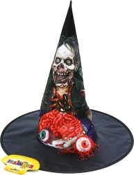 Spannend carnavalsaccessoire voor tieners en volwassenen: een hoed met een realistisch brein en een uitpuilend oog. Ideaal voor themafeesten, verkleedpartijen en Halloween. Eenvoudig te combineren met een kostuum en trekt meteen de aandacht dankzij zijn angstaanjagende look en speels effect.
