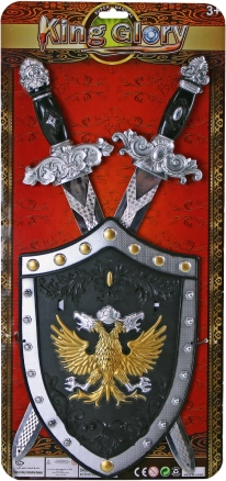 Ga op pad in de wereld van ridders met deze complete set voor kleine helden. De set bevat 2 zilverkleurige zwaarden van 49 cm en een versierd schild met wapen. De lichte en veilige kunststof constr... Meer tonen