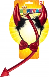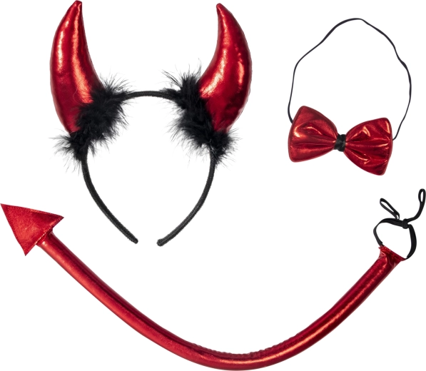 - Haarband met hoorns, staart, toverstaf in de vorm van een drietand