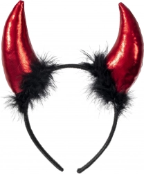 - Haarband met duivelshoorns – zit stevig en is zacht voor het kinderhoofd.