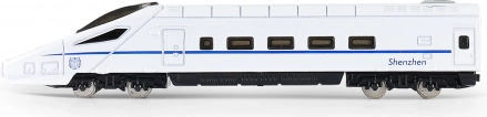 Geniet van realistisch speelplezier met de compacte metalen hogesnelheidstrein, die uitblinkt door gedetailleerde afwerking en een robuuste constructie. Dankzij de vrijloop beweegt hij zich soepel over vlakke oppervlakken en is hij een prachtige aanvulling op elke modelcollectie.
