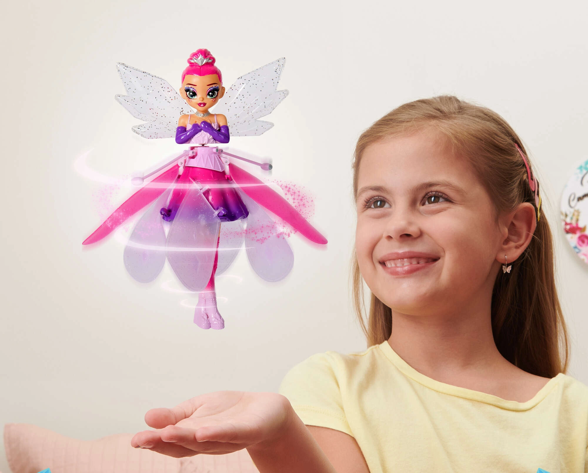 De vliegende pop HATCHIMALS Crystal Flyers verandert elke kamer in een magische scène. Na het inschakelen gaat de fee draaien en stijgt ze elegant op. Dankzij de ingebouwde bewegingssensoren reageert ze op je handen, zodat je haar eenvoudig door de lucht kunt sturen en boven je handpalmen kunt laten dansen. Ze is gemaakt van duurzame en veilige materialen die geschikt zijn voor dagelijks gebruik.
