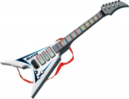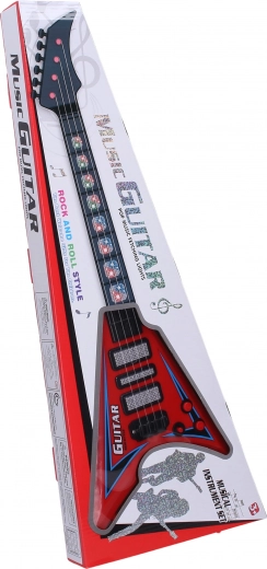 Deze elektrische gitaar is ideaal voor zowel beginnende als gevorderde muzikanten dankzij zijn afmetingen van 22x5x56 cm. Het heeft licht- en geluideffecten die een unieke ervaring creëren tijdens het spelen. Werkt op drie 3xAA batterijen, die niet zijn inbegrepen, en is eenvoudig te bedienen met de AAN/UIT-schakelaar bij de potentiometers. Beide potentiometers dienen om de effecten te regelen.