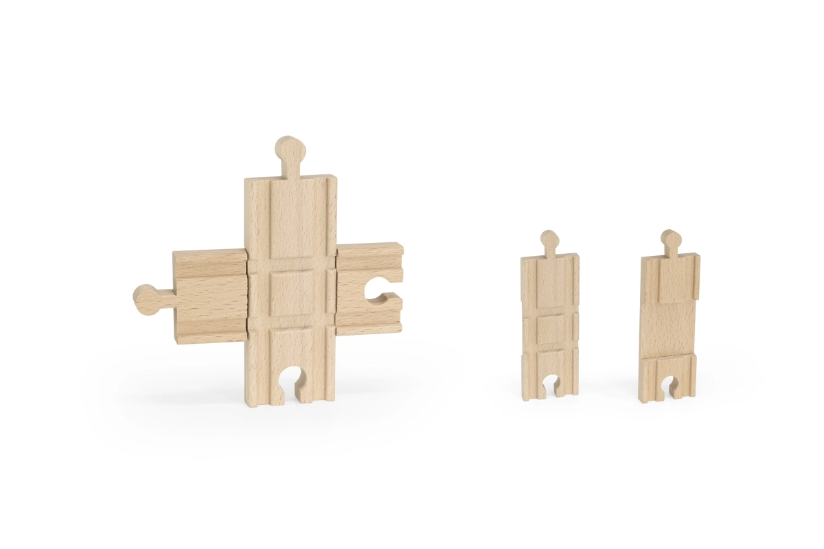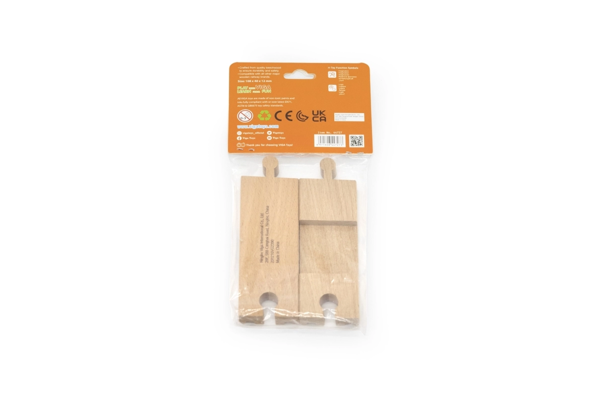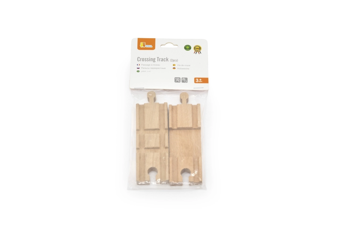Verpakking met 2 stuks rails – kruising. Deze rails van het merk Viga zijn compatibel met rails van het merk Maxim. Verpakt in een zakje. Afmetingen van de kruising ca. 12,5×4×1 cm. Leeftijd 3+
