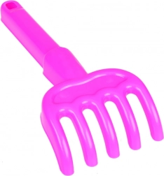 De set bevat een schep, een hark en een visvormpje – alles van duurzaam plastic en in opvallende kleuren voor lange uren speelplezier.