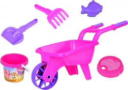 Een leuke en praktische tuinset voor kinderen met kruiwagen en veel accessoires die buitenspelen, motorische ontwikkeling en creativiteit stimuleert. De lichte roze kruiwagen, emmer met deksel dat als zeef dient, schep, hark en visvorm zorgen voor uren creatieve pret in de tuin en in de zandbak. Gemaakt van hoogwaardige en veilige materialen, geschikt voor kinderen vanaf 3 jaar.