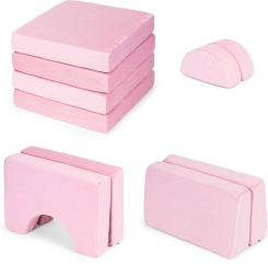 Opvouwbare modulaire kinderbank voor 2 kinderen, 10 kussens ECOTOYS – roze