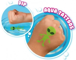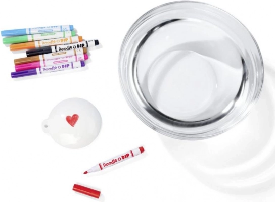 Duik in een wereld van kleur en creativiteit met onze Doodle o Dip-set, waarmee je prachtige water-tattoos kunt maken. Deze set bevat acht magische stiften in verschillende kleuren en een speciale tekenonderlegger. Teken je afbeelding op de onderlegger, leg hem vervolgens in het water en kijk hoe de tekening loskomt en onderdeel wordt van jouw creativiteit – ideaal voor op de hand of een ander deel van het lichaam.