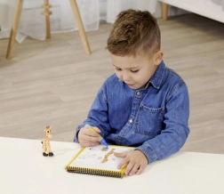 Het praktische blokformaat van 17 × 19 cm past perfect in de rugzak, voor uitstapjes of in de wachtruimte. De verpakking bevat bovendien een schattig giraf-figuurtje dat de fantasie en thematisch spel bevordert, en ook een penseel voor extra technieken met water.