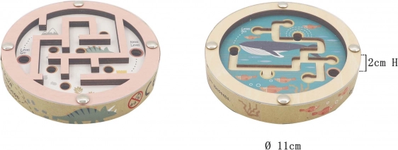 Dubbelzijdig houten knikkerspel biedt plezier aan beide kanten met thema’s van de zee of dinosaurussen. Ideaal voor de ontwikkeling van de fijne motoriek en concentratie.