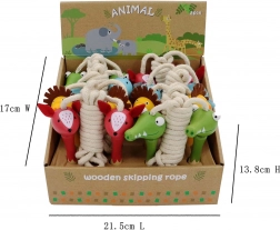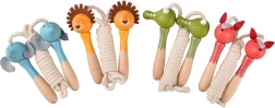 Een schattig springtouw met houten handgrepen dat elke kleine springer blij maakt. Dankzij de lengte van 210 cm en de vrolijke dierenmotieven (olifant, leeuw, krokodil, vos) brengt het plezier in bewegen en helpt het ritme, behendigheid en coördinatie te ontwikkelen.
