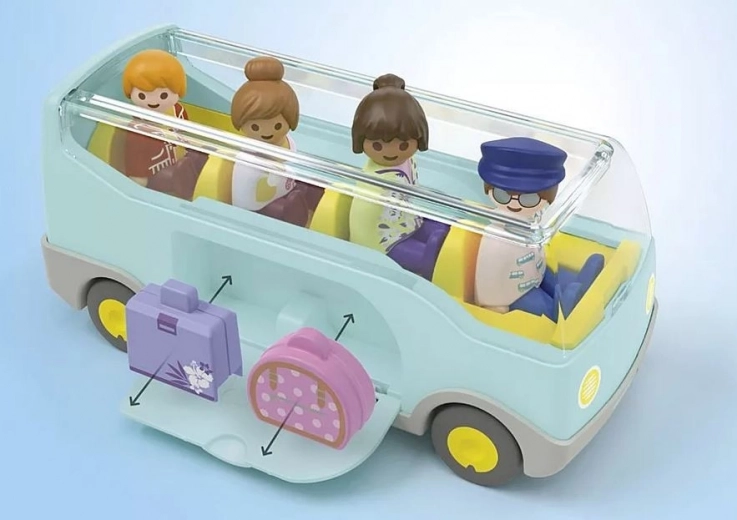 De robuuste toeristenbus met open interieur en vier zitplaatsen is ideaal voor kleine handjes en stimuleert zelfstandig spel.