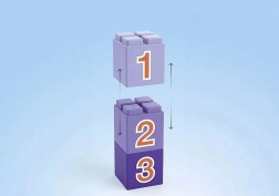 Drie stapelbare blokjes met de cijfers 1, 2 en 3 ondersteunen vroege rekenvaardigheid, sorteren en het bouwen van torens.