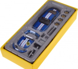 Het wisselen van componenten is eenvoudig: met de meegeleverde spatel verwijder je een onderdeel en plaats je een ander. Rubberen, vrij draaiende wielen maken soepel rijden mogelijk, terwijl openende deuren en kofferbak de trouw aan de echte auto onderstrepen. Ideaal als cadeau voor autoliefhebbers, kinderen en fans van die-cast modellen.