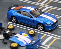 Rubberen, draaiende wielen zorgen voor een soepele beweging op een vlakke ondergrond, zodat je zowel van het tentoonstellen als van racend spelen kunt genieten.
