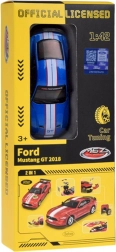 Dit gelicentieerde model FORD MUSTANG GT (2018) op schaal 1:42 biedt een unieke combinatie van verzamelkwaliteit en creatief spel. In de verpakking vind je diverse verwisselbare onderdelen waarmee je eenvoudig je eigen stijl creëert – van bumpers en wielen tot aan de spoiler. De metalen carrosserie, het gedetailleerde interieur en beweegbare delen zorgen voor een realistische beleving.