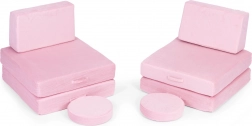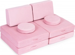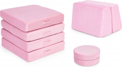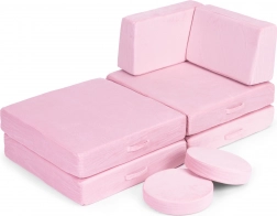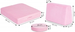 De hoezen met rits kun je gemakkelijk verwijderen en wassen, wat het schoonhouden zelfs bij dagelijks gebruik vereenvoudigt. Dankzij het universele ontwerp in roze past de bank in zowel moderne als speelse interieurs en ondersteunt hij creatief DIY-bouwen – van huisjes tot “voertuigen”.