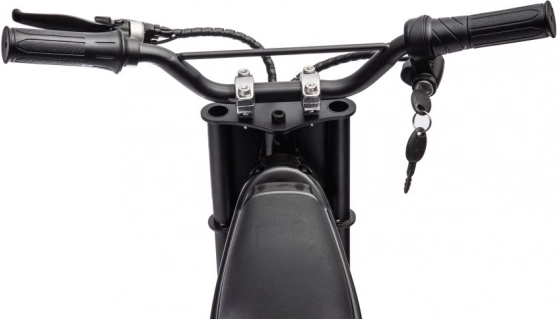 Overzichtelijk stuur met comfortabele grepen en een contactslot bieden controle, veiligheid en eenvoudige bediening, ook voor kleinere rijders.