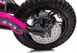 Ontdek het rijplezier met deze elektrische mini-crossmotor die een aantrekkelijk design met praktische eigenschappen combineert. De roze uitvoering spreekt kinderen aan, terwijl ouders de onderhoudsarme elektrische aandrijving, het stabiele frame en de doordachte veiligheidsfuncties waarderen. De motor is gemaakt voor plezier buiten verharde wegen én op glad asfalt.